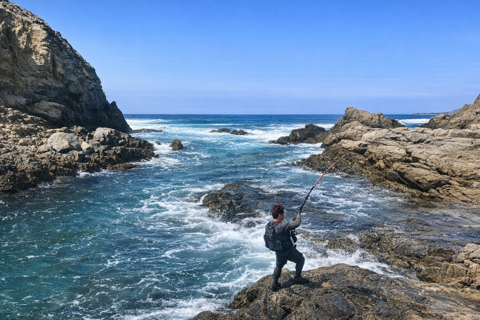 海を纏う。釣りと日常をつなぐ「rokuyon64」のオリジナルアイテム。Tシャツ、パーカー、マグカップ、メッシュバッグなど、海や磯の空気感を落とし込んだアイテムを展開しています。